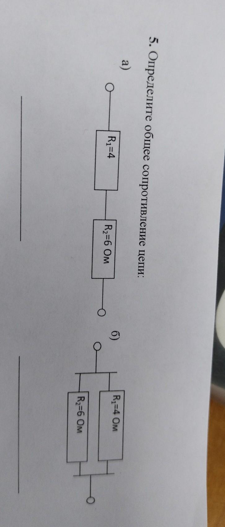 ПОМОГИТЕ У МЕНЯ СОР 5. Определите общее сопротивление цепи: a) R1=4 R,=4 Ом б) R,=6 Ом R,=6 Ом
