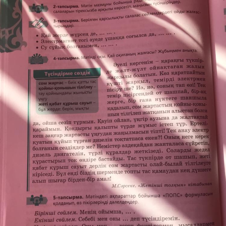 тапсырма. Мәтіндегі ақпараттар бойынша «ПОПС» формуласын