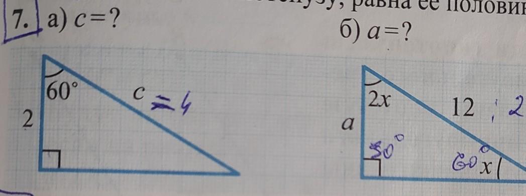 б) один острый угол равен х, а второй 2х, можно найти их методом подбора. Сумма всех углов в пр.треугольнике равна 18 градусам, значит сумма не известных углов равна 90.