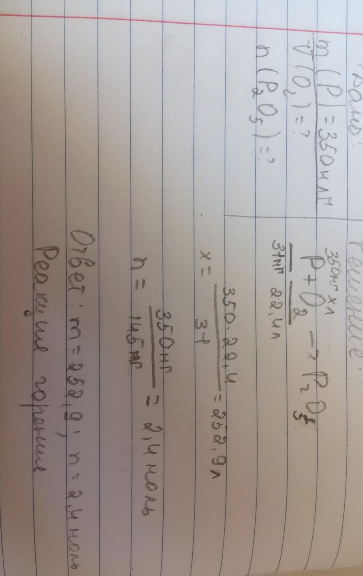 найдите объем кислорода н у необходимого для сгорания 350 миллиграмм фосфора и количество образовавшегося в результате реакции оксида фосфора. к какому типу относится эта реакция