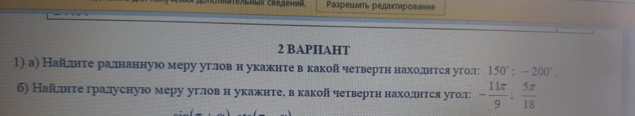 а) 1) 5π\6 положительный, и находится во 2 четверти) между 90° и 180°
