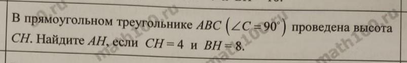 АН=СН²/ВН=4²/8=16/8=2