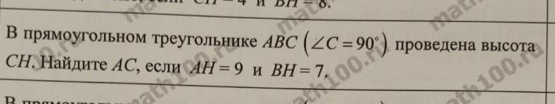 АВ=АН+ВН=9+7=16
