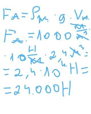 ПОМОГИТЕ ПОЖАЛУЙСТАСила Архимеда 1. Железная плита объемом 2,4 м полностью погружена в воду. Найти архимедову силу, действующую на неё 3. Чему равна архимедова сила, действующая на тело объемом 200 см, если оно на половину своего объема погружено в воду? 4. При полном погружении железного бруска в спирт его вес уменьшился на 160 Н. Каков объем этого бруска