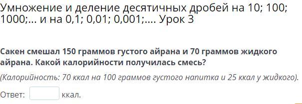 Сакен смешал 150 граммов густого айрана и 70 граммов жидкого айрана. Какой калорийности получилась смесь?