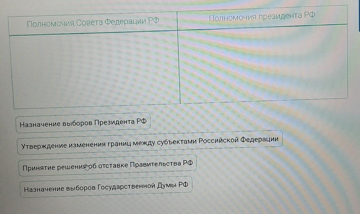 Что из перечисленного относится к полномочиям президента РФ, а что к полномочиям Совета Федерации РФ?