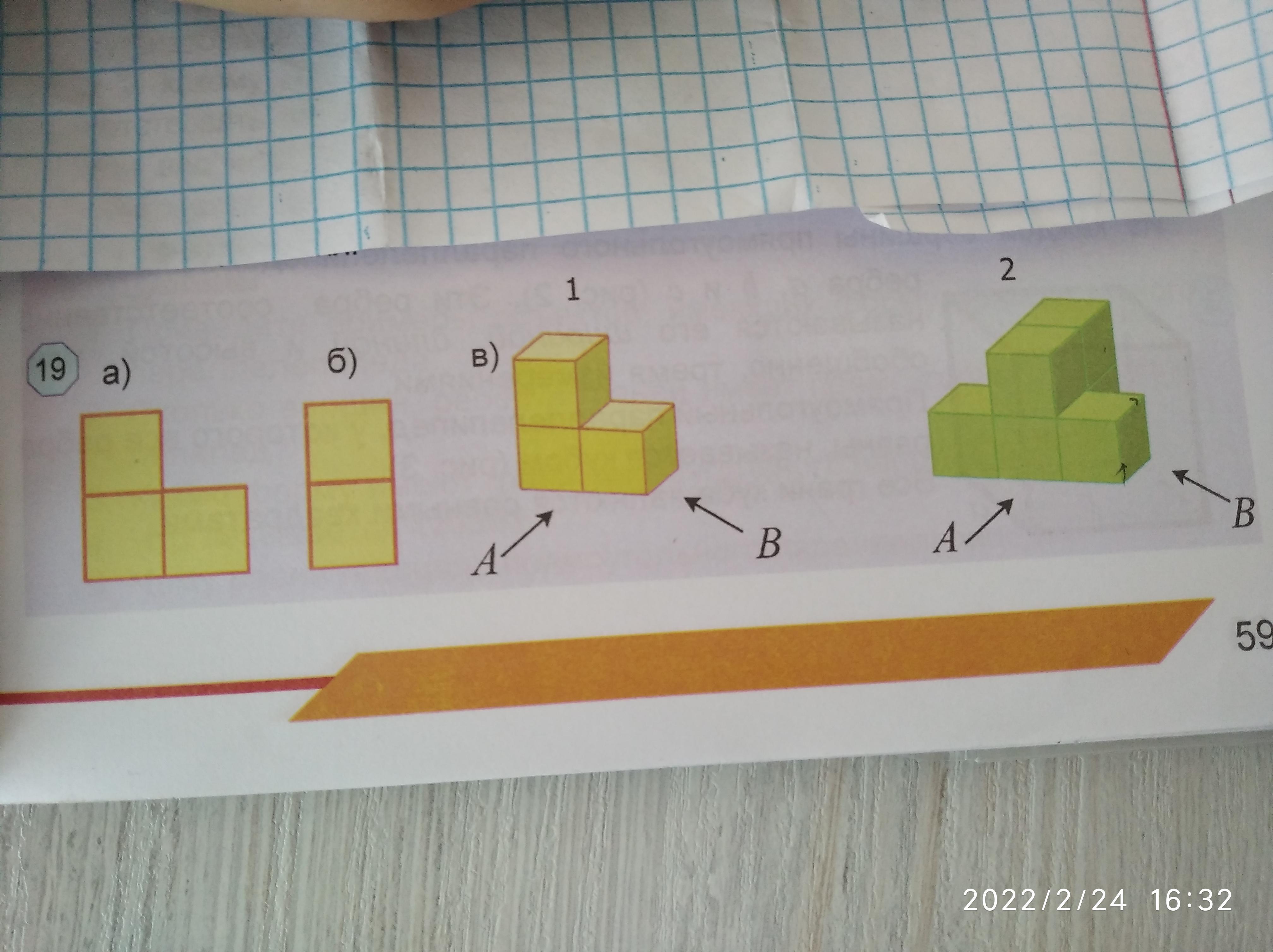 Номер 241 когда пространственную фигуру 1 раз смотрели со сторон A и B то получили изображения а и б (рис 19 ) какими будут изображения пространственной фигуры 2 и какому направлению они будут соответствовать (вид «спереди», вид «сбоку» или вид «сверху») если эту фигуру рассматривать со сторон А и Б нарисуйте эти изображения. ОГРОМНОЕ СПАСИБО заранее