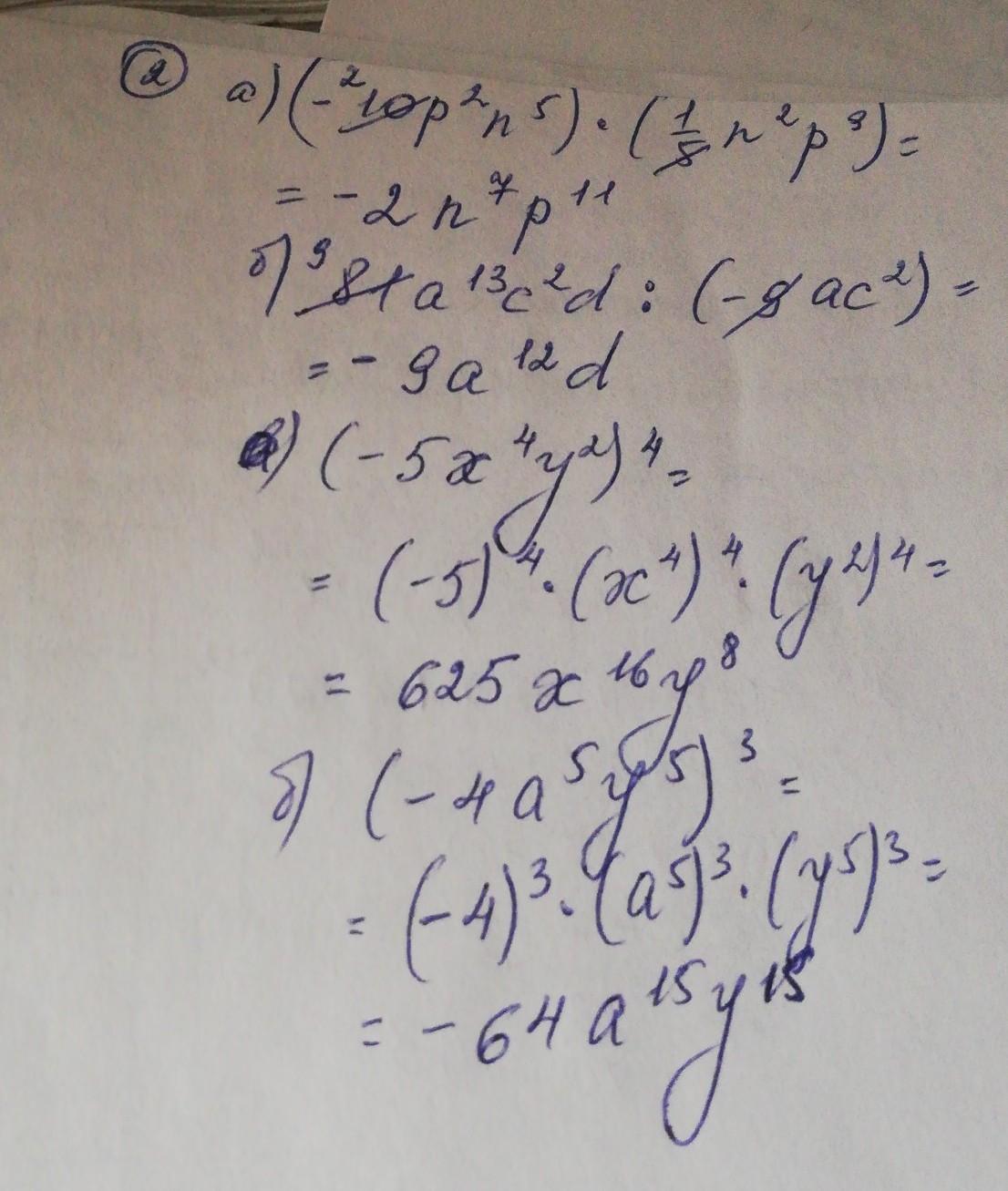 3. а) (-5x⁴y²)⁴ = 625x¹⁶y⁸