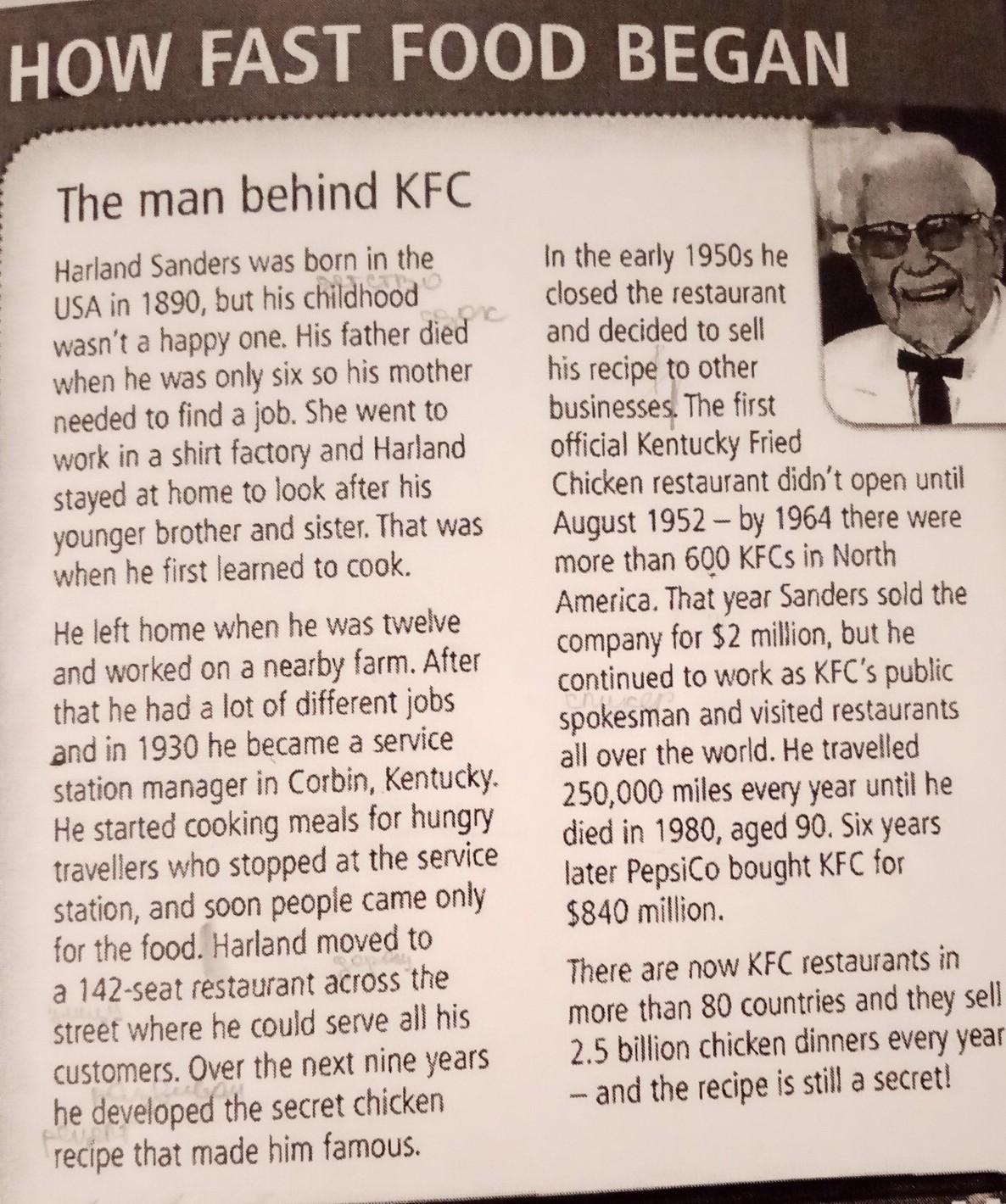 2 a) Read the article about KFC and Harland Sanders. Put these events in order.