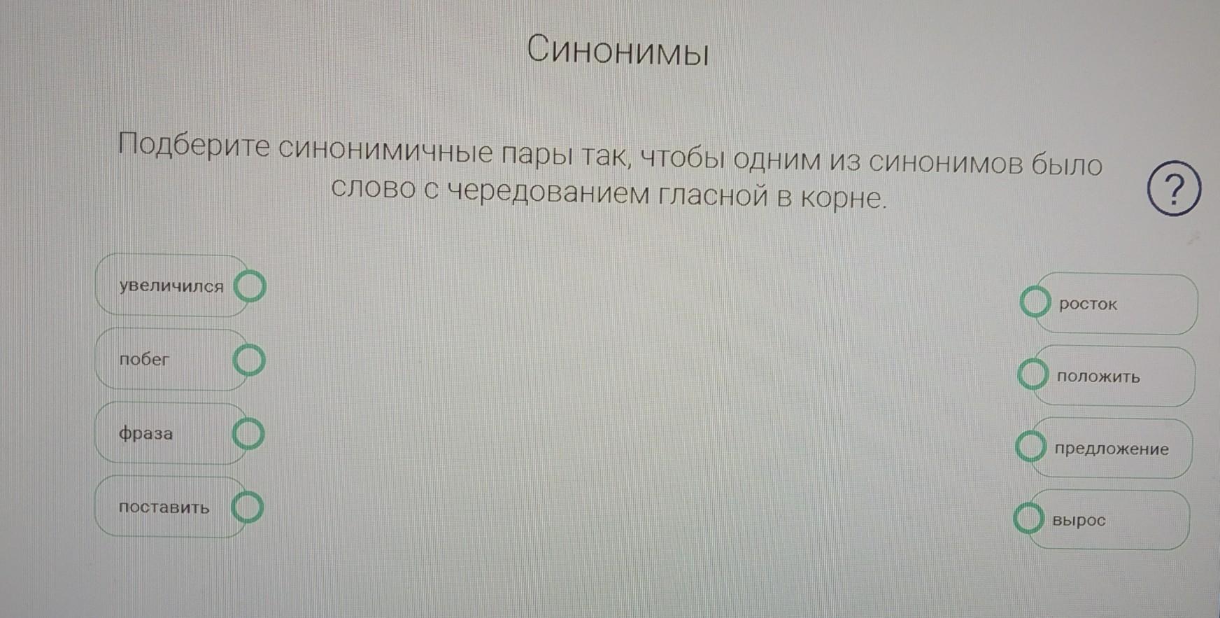 Увеличился-вырос, побег-росток, поставить-положить, фраза-предложение