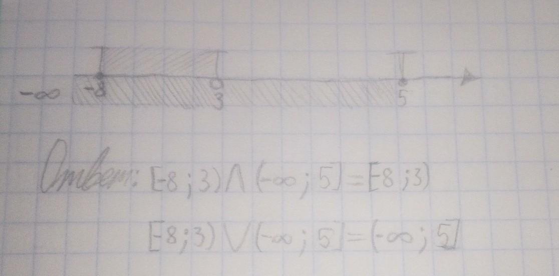 Изобразите на координатной прямой промежутки [– 8; 3) и (−∞ ; 5] и запишите их