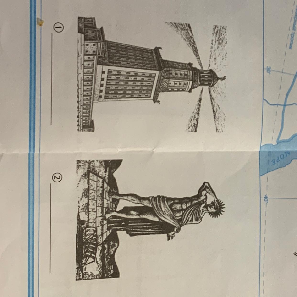 Ответ:1. Александрийский маяк. 2.Колос родосский