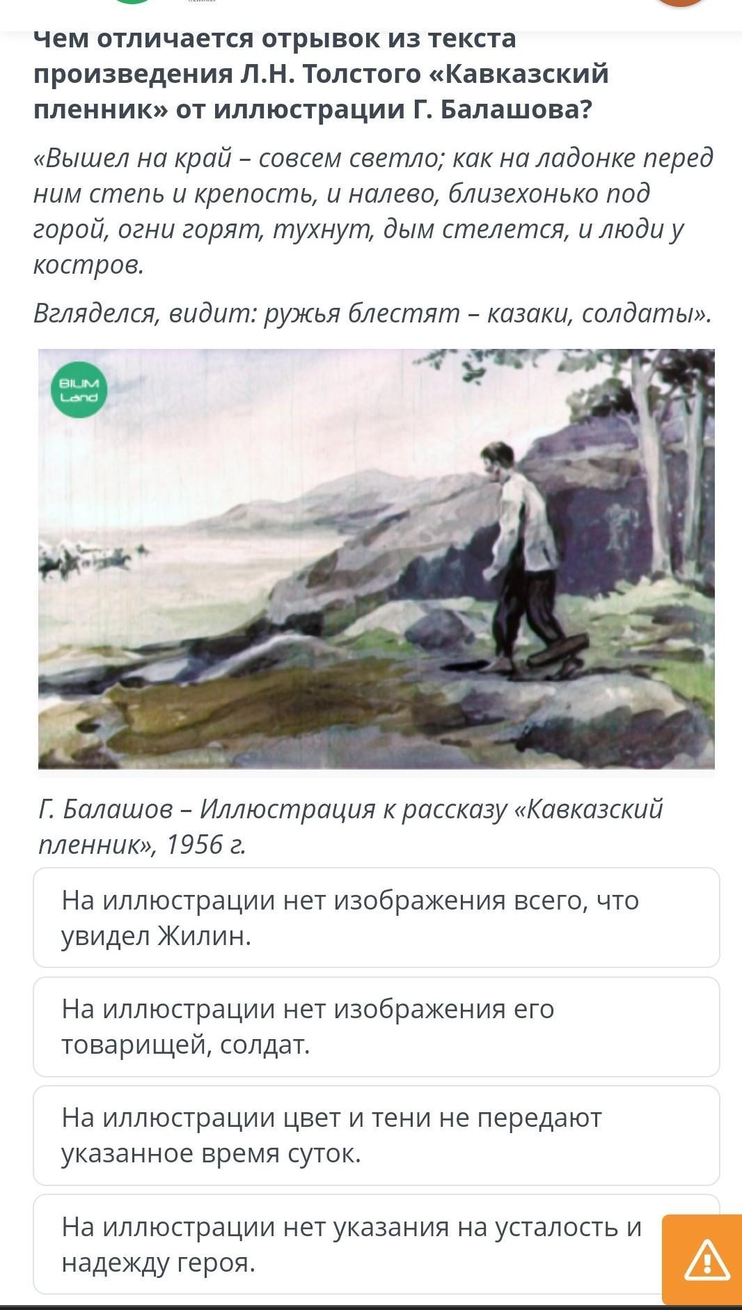 Чем отличается отрывок из текста произведения Л.Н. Толстого «Кавказский Пленник»> от иллюстрации г. Балашова?