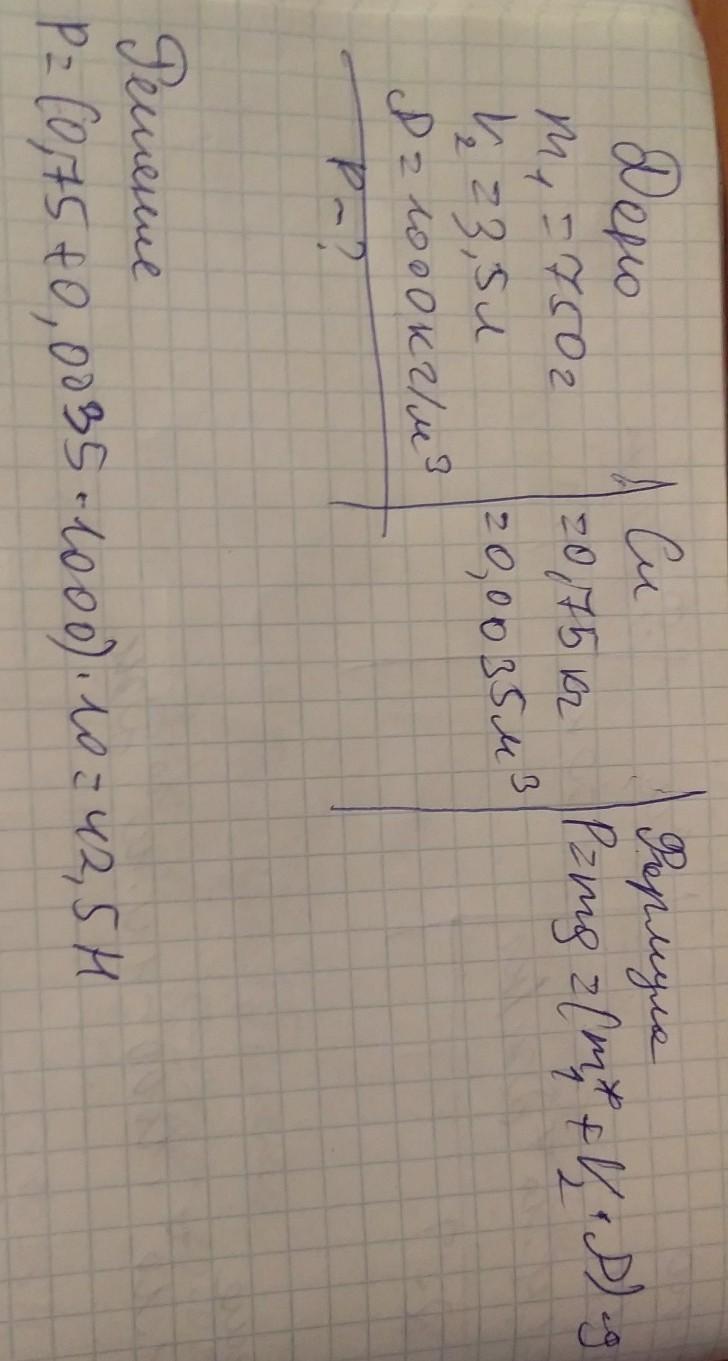 Відро масою 750 г вміщає 3,5 л води. Густина води 1000 кг/м3. Визначити вагу відра з водою. Прискорення вільного падіння 10 Н/кг. Відповідь запишить числовим значенням в .....Н.