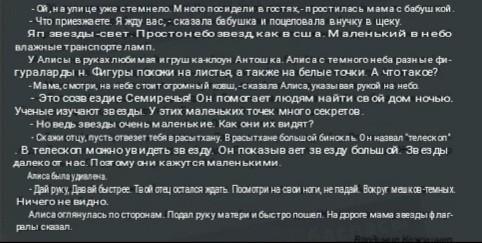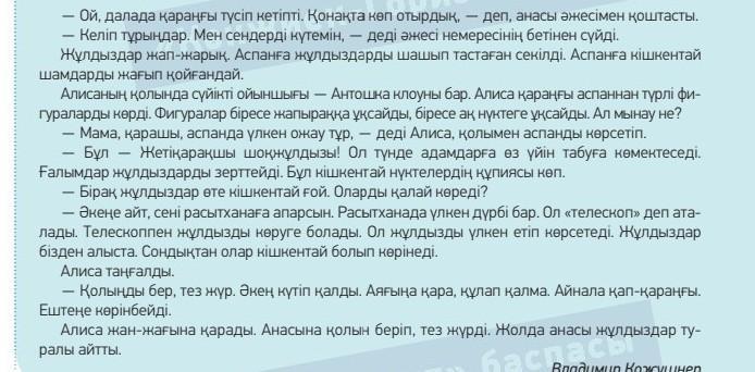 Алиса жан-жағына карады. Анасына колын берiп, тез жүрдi. Жолда анасы жулдыздар ту ралы айтты. баспасы