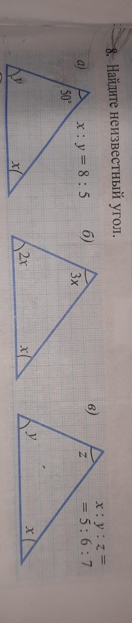 в) x : y : z = 5 : 6 : 7