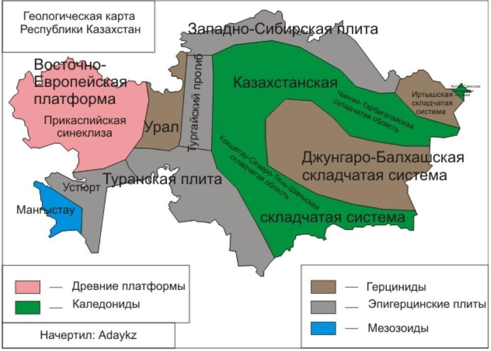 в рельефе Казахстана преобладают равнины, горные хребты расположены только на юго-востоке страны. рельеф центральных областей состоит из разрушенных плоскогорий. Республика обладает громадными залежами топливных, рудных и нерудных ресурсов. крупные месторождения нефти и природного газа расположены на прикайспийской низменности, основные запасы каменного угля (карагандинский, экибастузский бассейны) - в центральной части страны. Центральные и восточные области богаты запасами руд железа, марганца, хрома, урана, меди, вольфрама, цинка, свинца и др. из нерудных ресурсов особенно важны фосфор и сера.