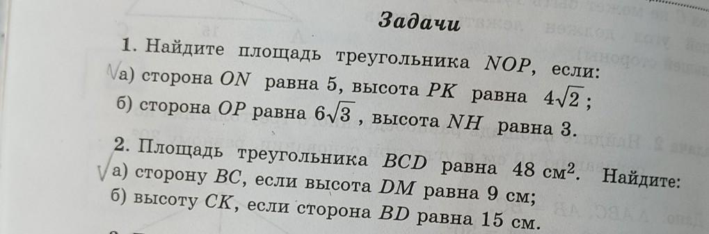 из формулы площади выражаем сторону, получается нам нужно площадь(48) умножить на 2 и поделить на сторону (9)