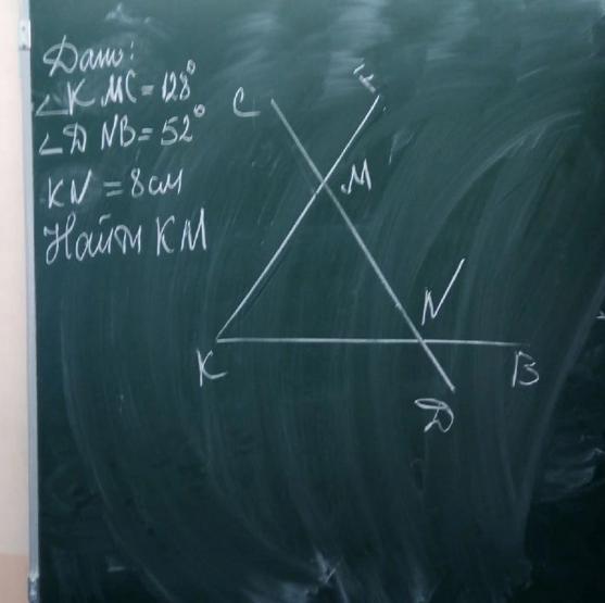 В треугольнике КNM, два угла равны => треугольник КNM- равнобедренный => боковые стороны равны, то есть КN=KM=8см