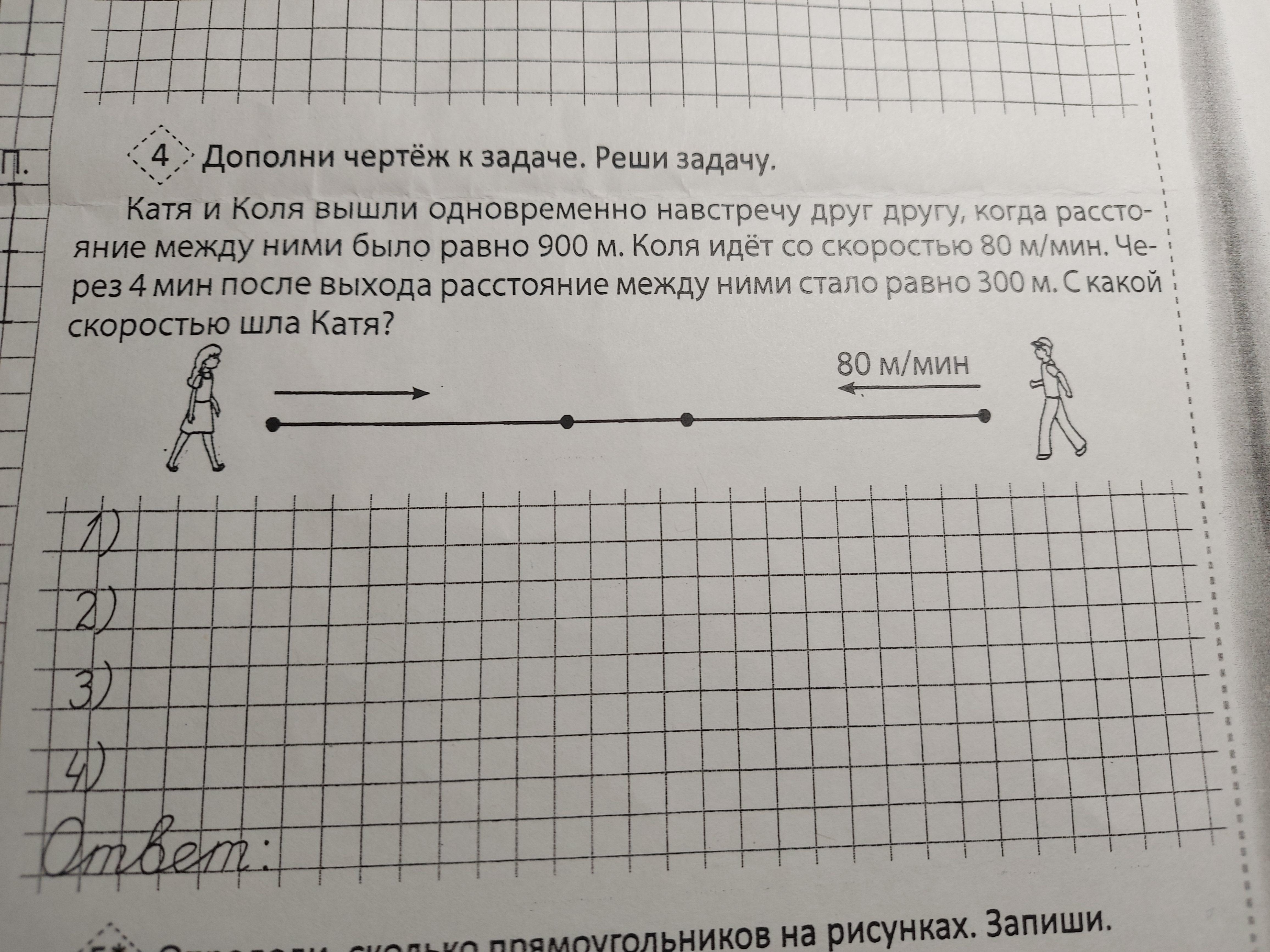 1) 80*4=320 (м) - прошёл Коля за 4 минуты