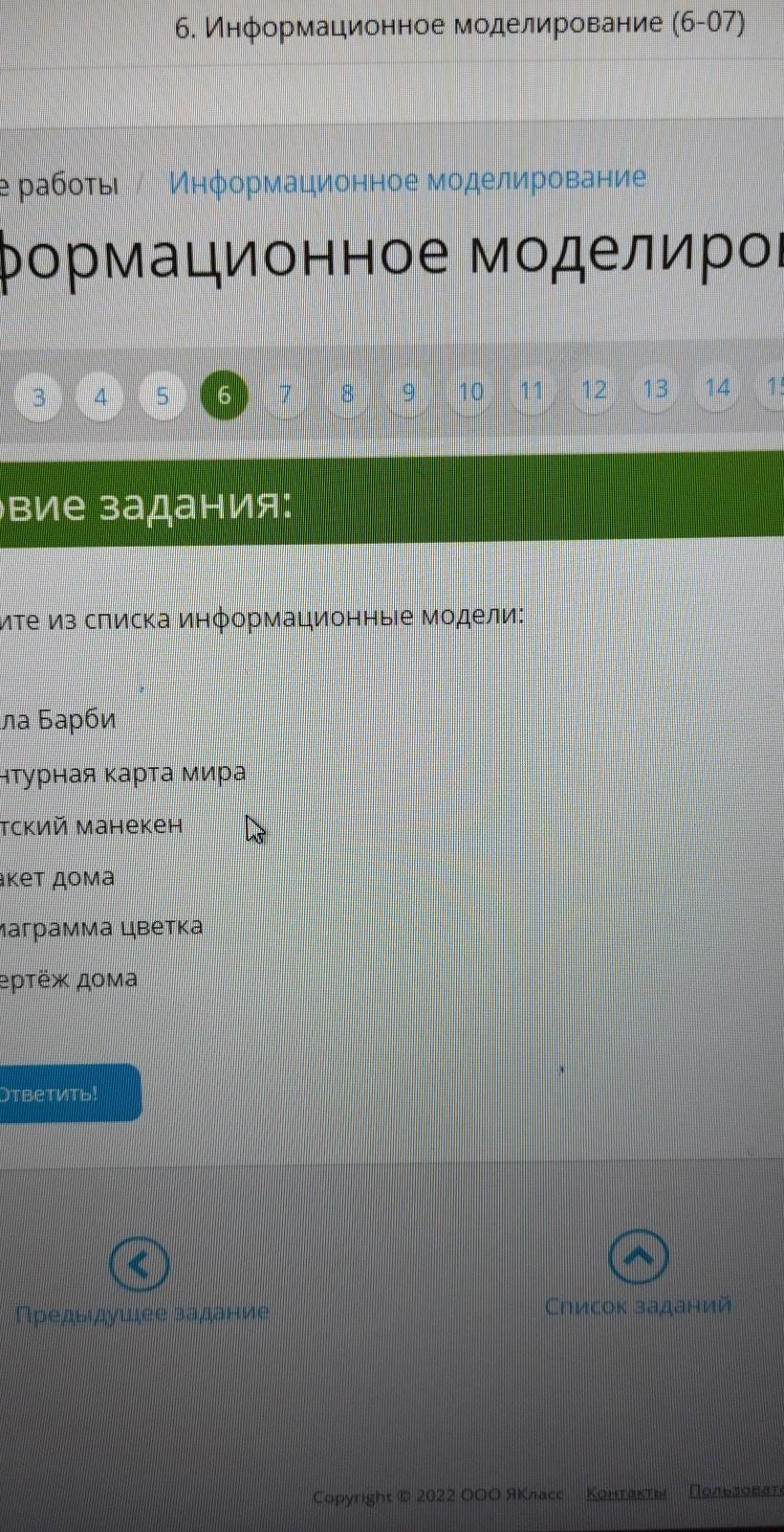 Выберите из списка информационные модели: О кукла Барби контурная карта мира детский манекен макет дома диаграмма Цветка чертеж дома