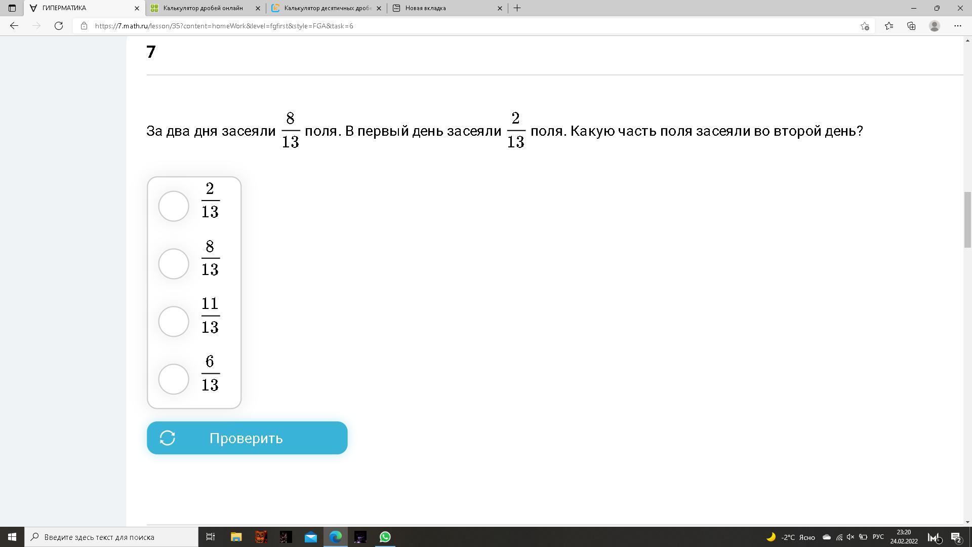 6/13 шесть тринадцатых