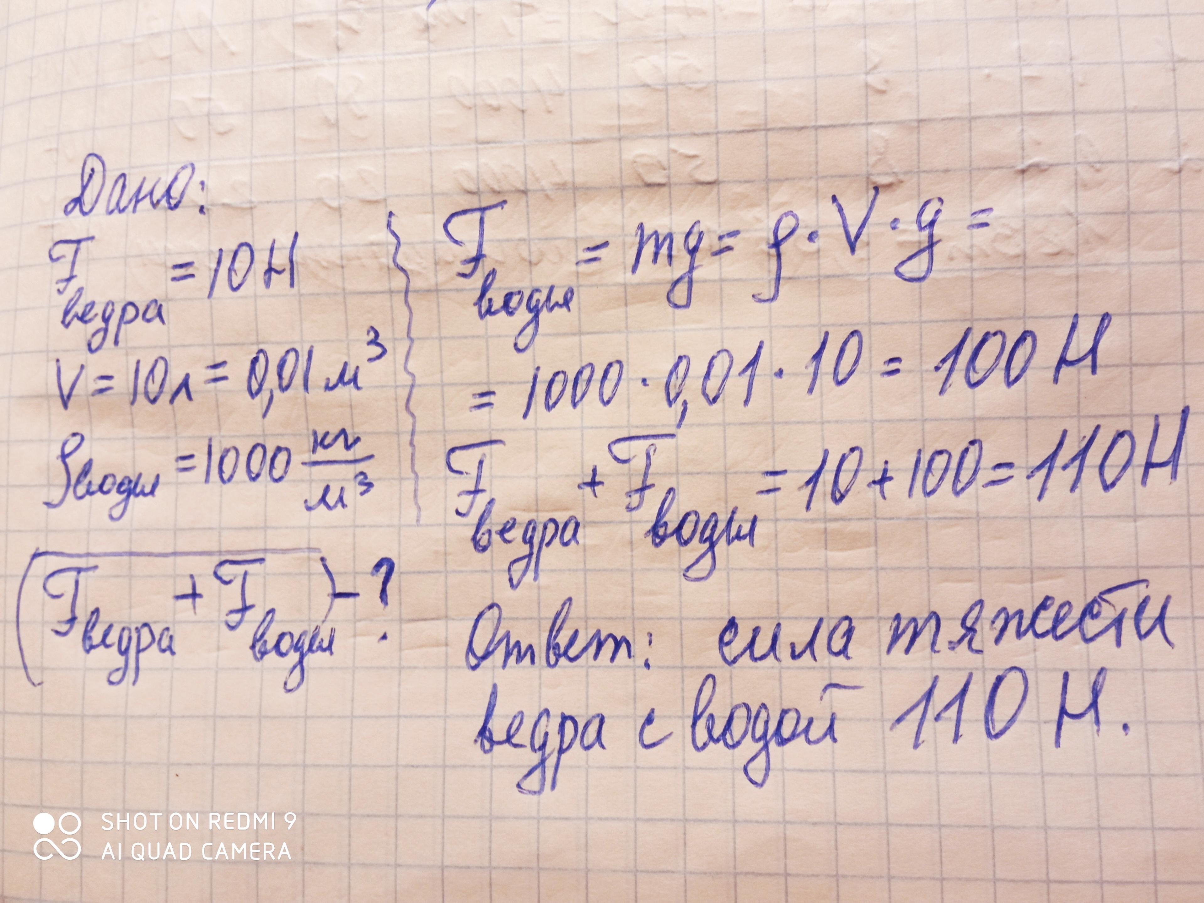 На порожнє відро діє сила тяжіння 10Н. Яка сила тяжіння діє на це відро, якщо у нього налити 10 л ПОЖАЛУЙСТААААААААААААААААААААААААААА