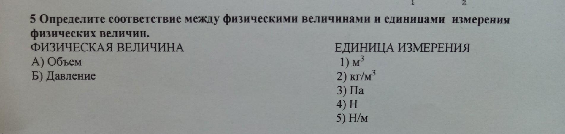 определите соответствие между физическими величинами и единицами измерения физических величин.