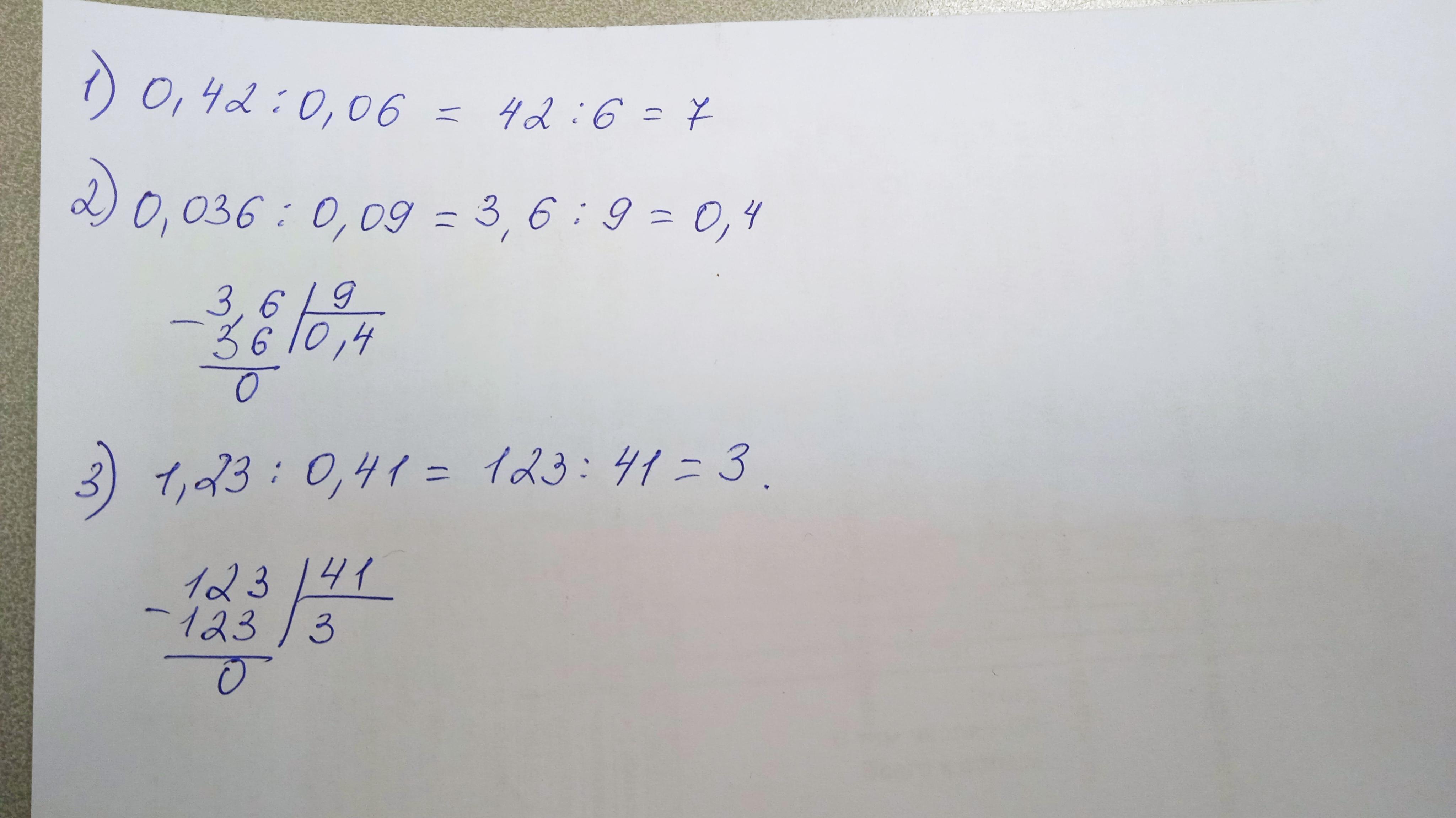 1. Перенести запятую в делимом и делителе вправо на то количество знаков, которое необходимо для превращения делителя в натуральное число. Если в делимом не хватит знаков, допишем в него нули с правой стороны.
