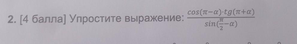 cos(π-α)*tg(π+α)/(sin(π/2-α))=-cosα*tgα/cosα=-tgα