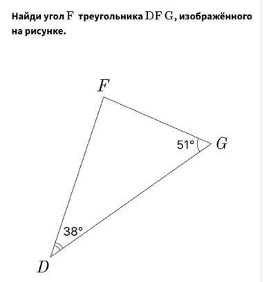 <F =180⁰ - (<G + <D)=180⁰- (51⁰+38⁰)=91⁰