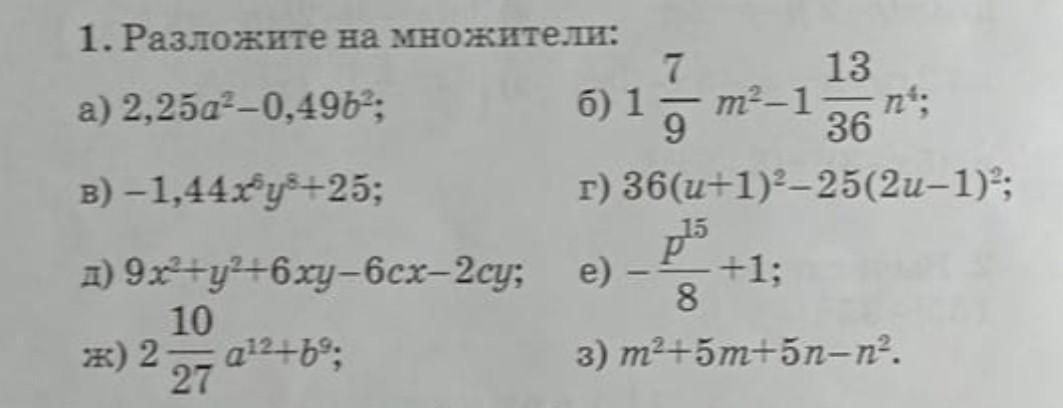 б)=(16/9)*m^2-(49/36)*n^4=(4/3*m-7/6*n^2)*(4/3*m+7/6*n^2)