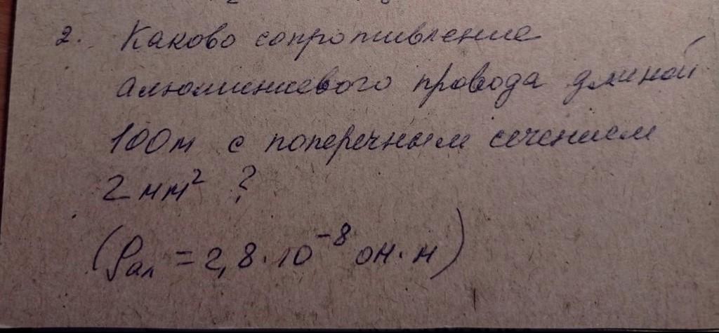 R = 2,8·10⁻⁸·100 / (2·10⁻⁶) = 1,4 Ом