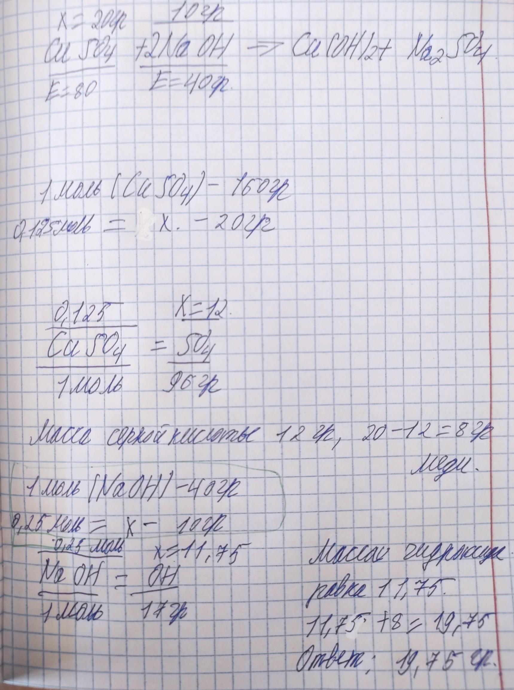 какая масса осадка образуется при взаимодействии 10 г гидроксида натрия с необходимым количеством сульфата меди (2)