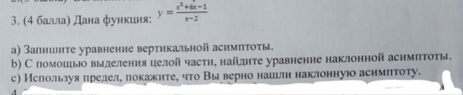 b) С помощью выделения целой части, найдите уравнение наклонной асимптоты.