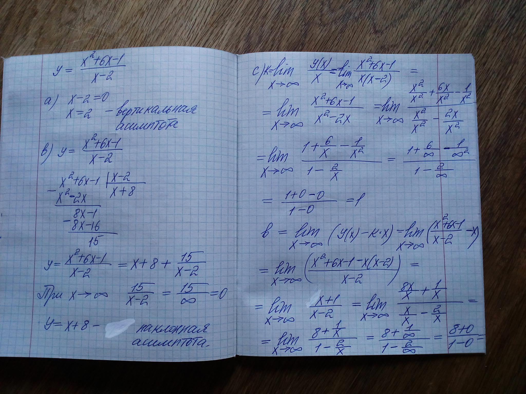 c) Используя предел, покажите что Вы верно нашли наклонную асимптоту.