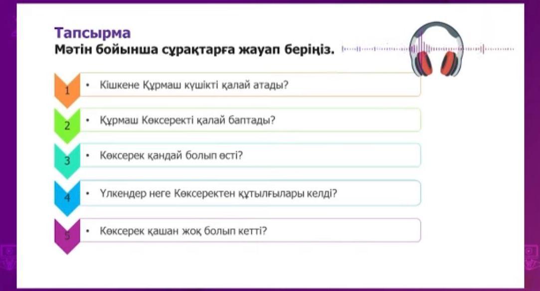 Мәтін бойынша сұрақтарға жауып беріңіз.