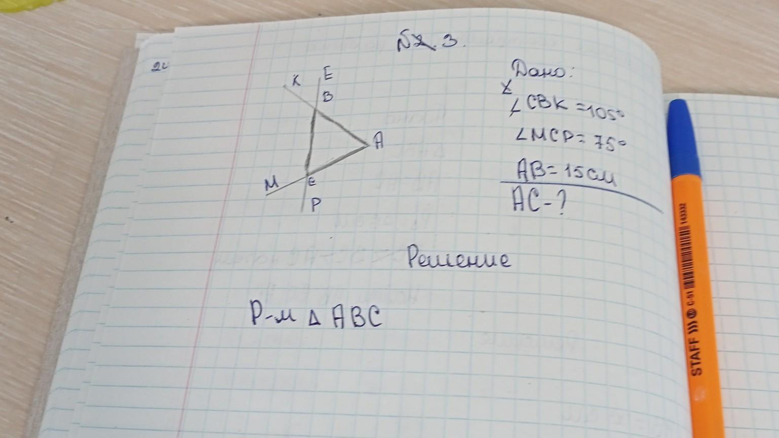 Треугольник АВС равнобедренный,т к углы при его основании равны между собой,тогда и боковые стороны равны между собой