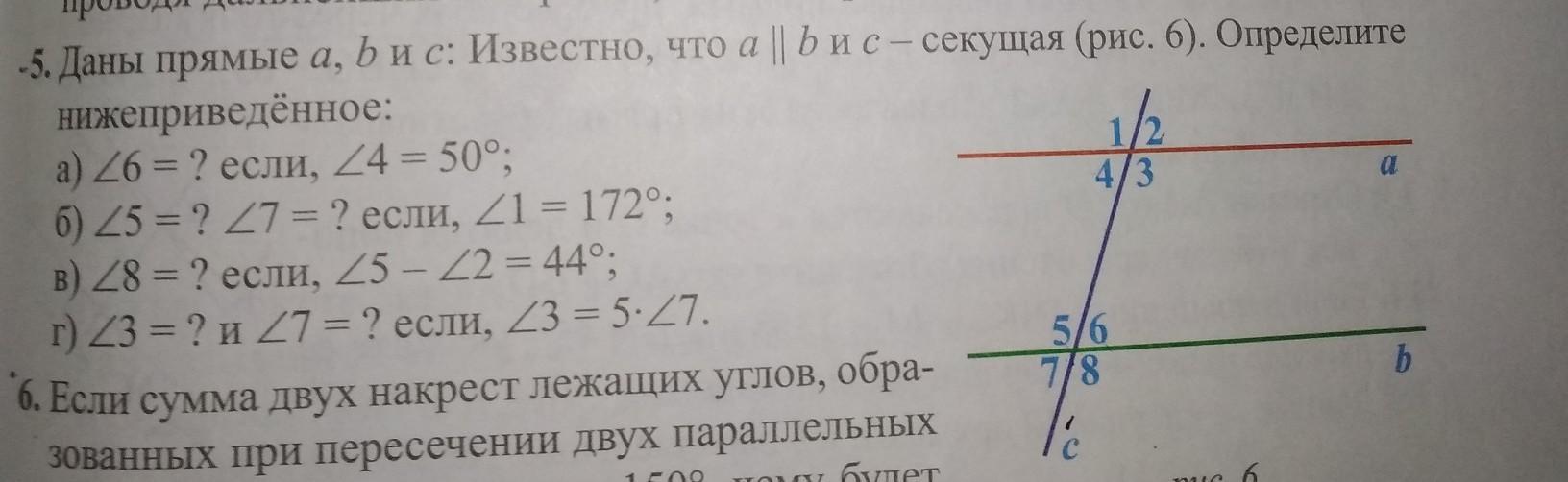 б) ∠1 = 172°, ∠5 - ?, ∠7 - ?