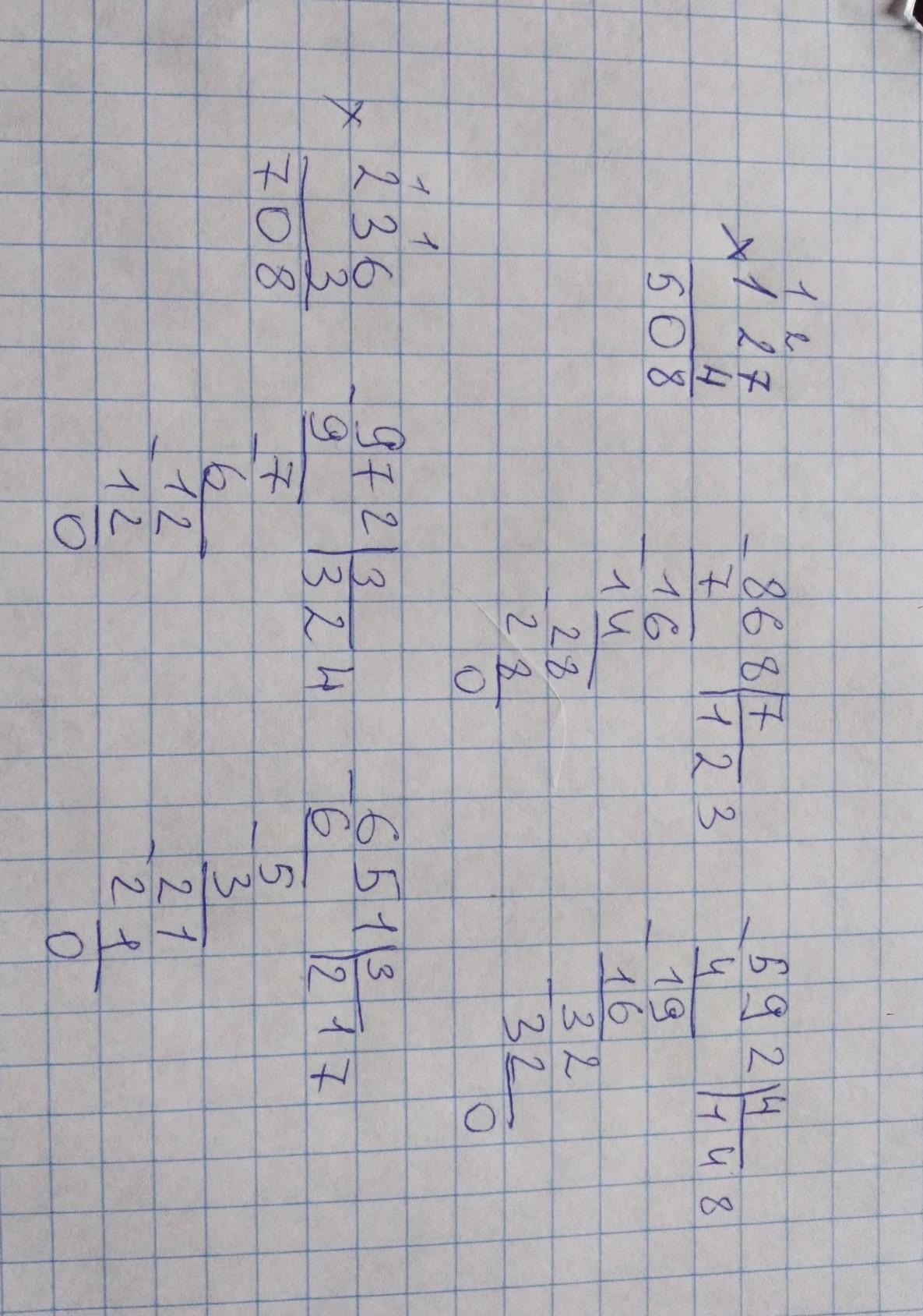 пожалуйсто помогите! вычисли в столбик 127*4 868/7 592/4 236*3 972/3 651/3