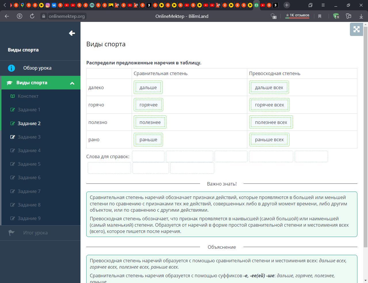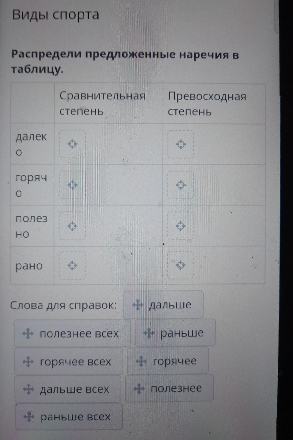 Распредели предложенные наречия в таблицу. Сравнительная Степень Превосходная Степень далек о горяч о полез Но рано 3.