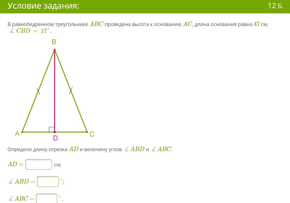 - AD = AC/2 = 47/2 = 23,5 см.