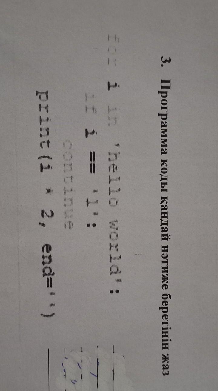 программа последовательно в цикле перебирает все символы строки hello world (for i in 'hello world')