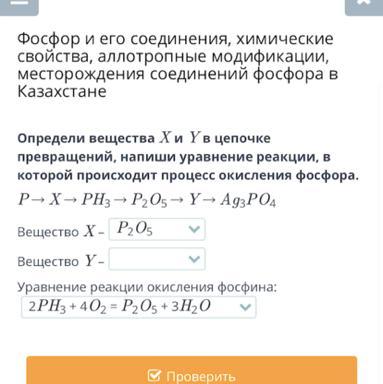 СРОЧНО!!!!!!!!!!Определи вещества X и Y в цепочке превращений, напиши уравнение реакции, в которой происходит процесс окисления фосфора.