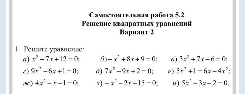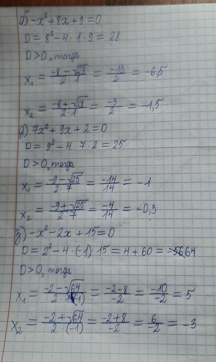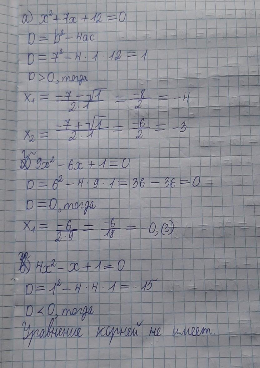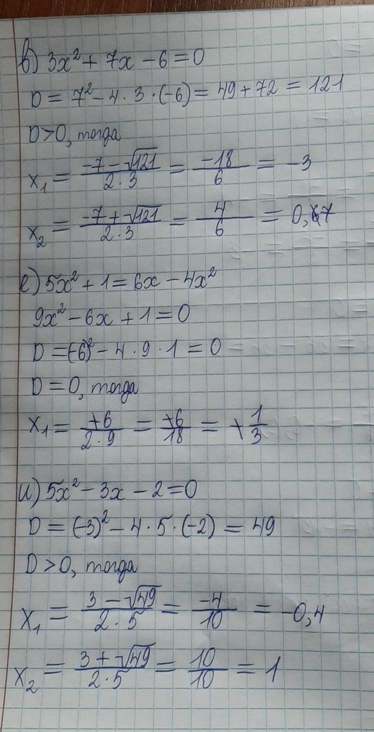 Буду решать через дискриминант, но сразу говорю, в одном или двух уравнениях я мог допустить ошибку, я в 7 классе просто( Сделал немного в разброс