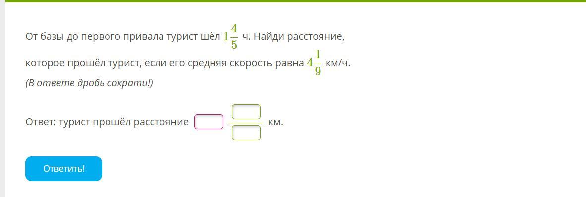 S=4 1/9*1 4/5=37/9*9/5=37/5=7 2/5 км=7,4 км.