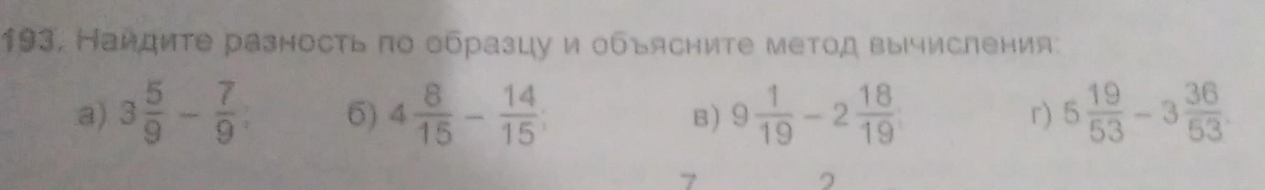 193. Найдите разность по образцу и объясните метод вычисления 5 7 8 14 18 6) 4 9 15 15 19 19 3 б а) 3 в 9-21 1 1) 5 В)