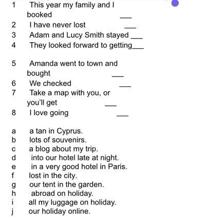 Match the beginnings of the sentences 1–8 with the endings a–j. There are two extra endings.