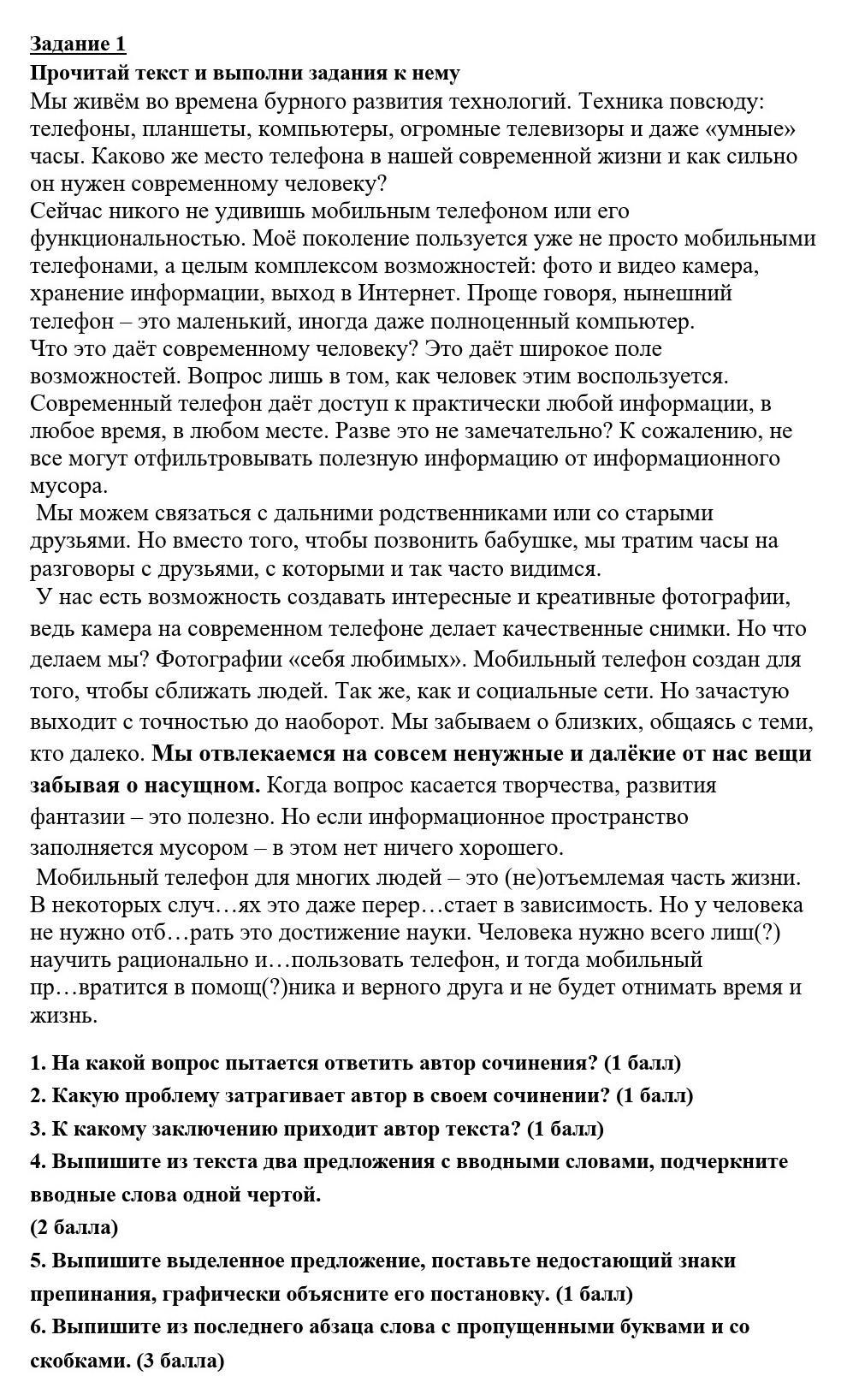 Мобильный телефон для многих людей – это (не)отъемлемая часть жизни. В некоторых случ…ях это даже перер…стает в зависимость. Но у человека не нужно отб…рать это достижение науки. Человека нужно всего лиш(?) научить рационально и…пользовать телефон, и тогда мобильный пр…вратится в помощ(?)ника и верного друга и не будет отнимать время и жизнь.