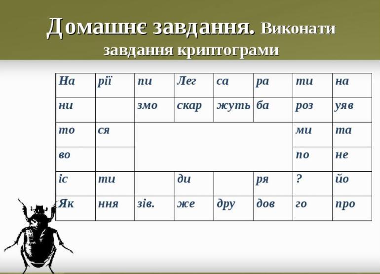 треба розшифрувати криптограму до твору "Золотий жук"